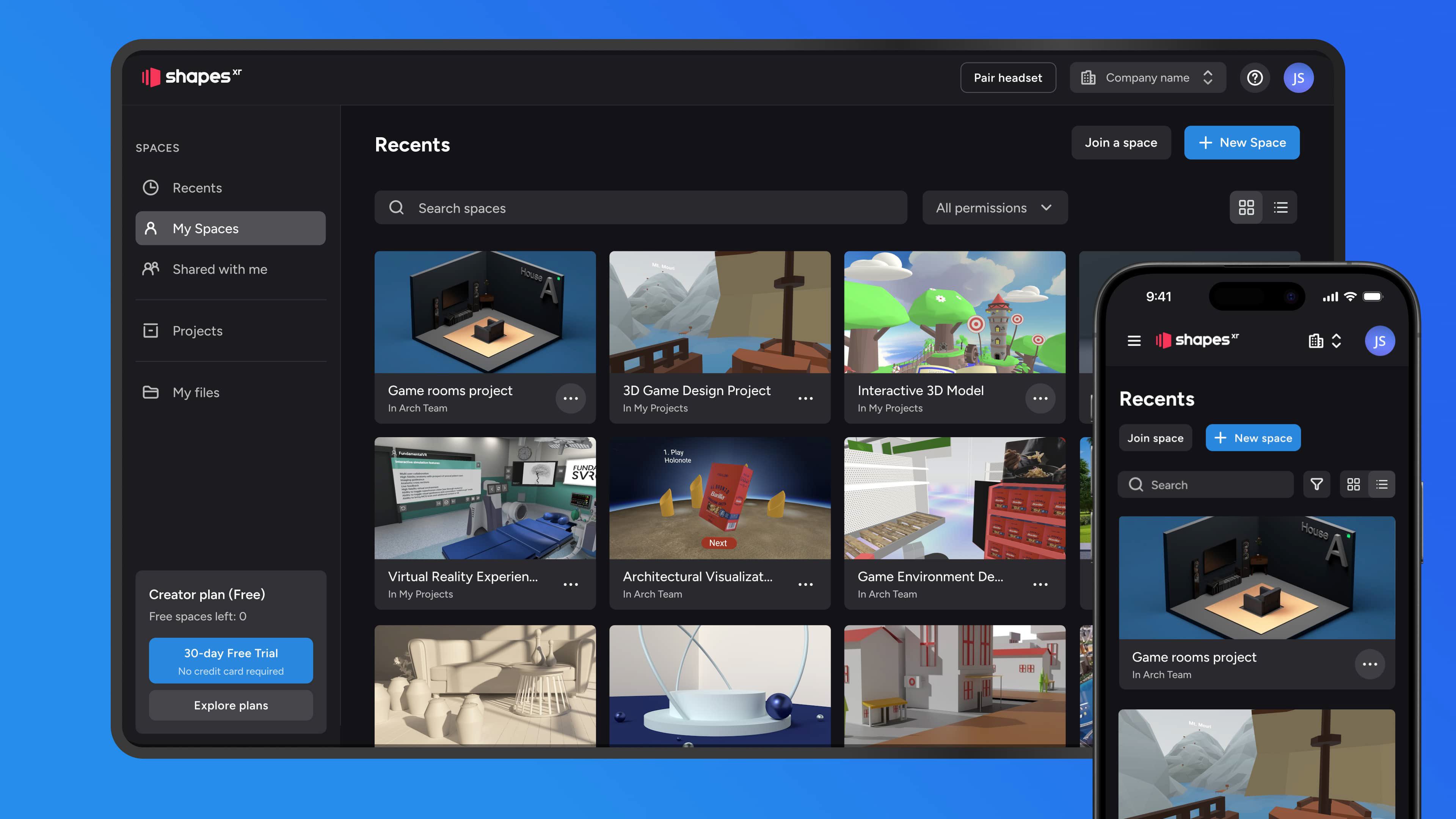 ShapesXR is a VR design tool, often referred to as the Figma for VR apps. As a part of its workflow, ShapesXR allows users to manage their projects on the web. This web application, or Dashboard, also enables users to import 3D models or images into their projects for use in the VR app. Additionally, it provides features for organizing projects, setting roles and permissions, and managing both organizational and personal accounts.